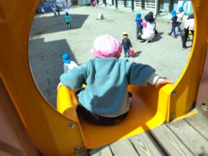 すべり台も大人気で滑る前に「いってきま~す!」と言ってハイタッチしていく子どもたちが可愛いです!