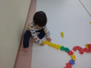お部屋ではパズルがプチ流行中です。お友だちと「これどこかな~」と探してはめています。完成すると得意げな顔で見せてくれて、行方不明になったパズルのピースはみんなで探してくれます✨