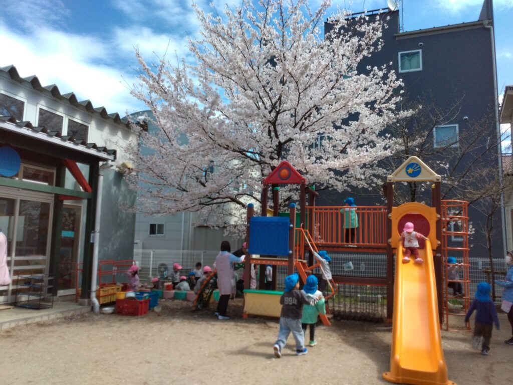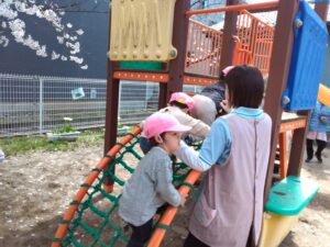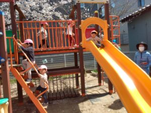すべり台も大人気で滑る前に「いってきま~す!」と言ってハイタッチしていく子どもたちが可愛いです!