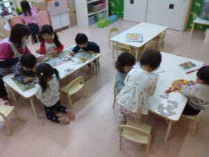 お部屋ではパズルがプチ流行中です。お友だちと「これどこかな~」と探してはめています。完成すると得意げな顔で見せてくれて、行方不明になったパズルのピースはみんなで探してくれます✨