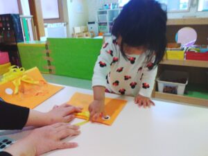 保育者と楽しく言葉のやり取りをしながら楽しむ姿がありました。