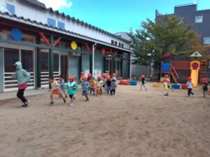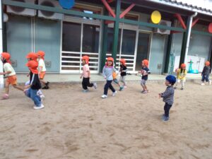 手作りボールで遊んだり、みんなでマラソンをしたりと様々な遊びを楽しんでいます!