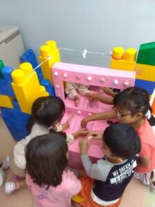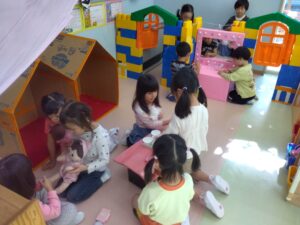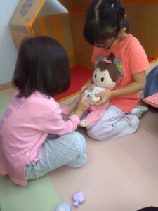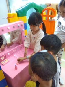 鏡の前に座ってお仕度したり、お人形にお化粧してあげたりして楽しんでくれました🎵