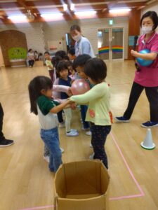 転がしドッジボールやつなひき、ボール運びリレーなどなど・・・