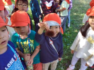 どんぐりの木の下には小さなどんぐりが落ちていて、みんなでよーく目を凝らして拾ってきました!