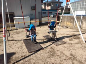 神社につくと、さっそくブランコ🎵お天気も良かったので気持ちよさそうでした🤩