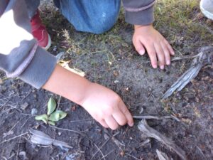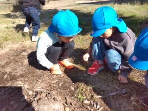 虫探しをしているお友だちは、なんと『幼虫』を見つけていました!