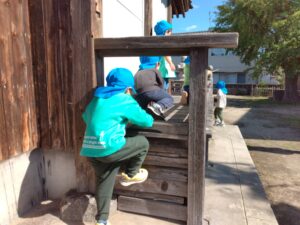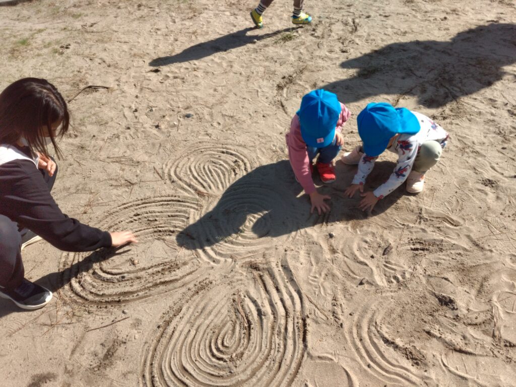 地面にお絵描きをしたり、入口の狭い空間にはいり、「こっちこっち」と呼ぶ声もしていました💕
