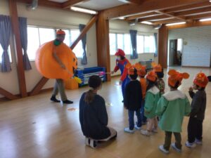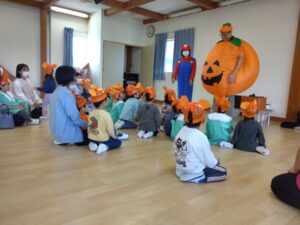月に二回の英語の日😊今回はハロウィンも近いということで、子どもたちも英語のチアゴ先生も仮装しました☆