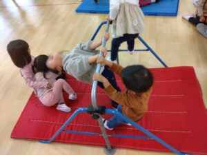 ホールやお部屋で遊んだり!毎日、元気いっぱい活動しているりす組😊