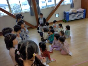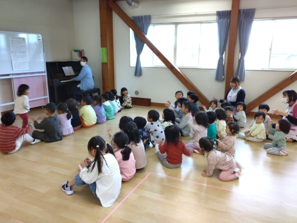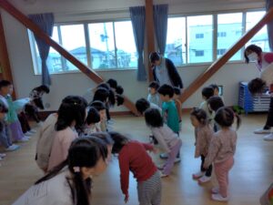 朝の会にも参加してきました🎵りす組のお友だちも、もうすぐ始まる朝の会の活動…。きりん組さんみたいにかっこよくできるかな?楽しみです😆✨