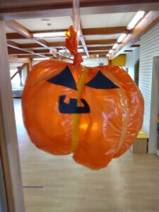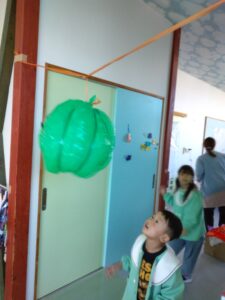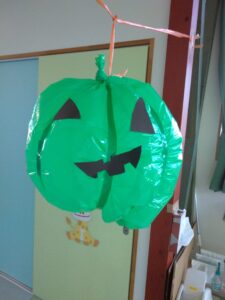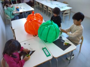 まずは、大きなおばけかぼちゃを作りお部屋の中もハロウィーンムード全開に✨
