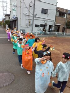 すれ違うお友だちを見つけると「はっぴーはろうぃん!」と