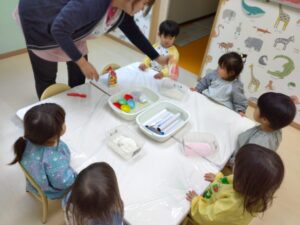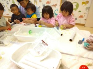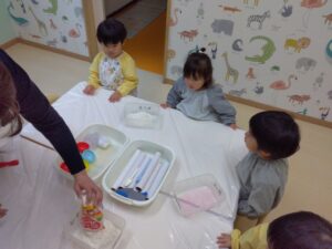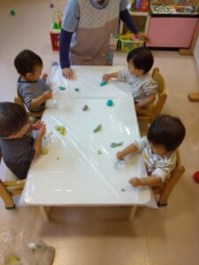 小麦粉粘土で遊んだよ🎵 りす・あひる・ひよこ組