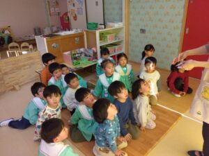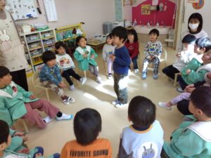 準備ができたらまずは座って上手に歌えるようになった「まめまき」の歌をみんなの顔を見ながら🎵