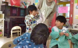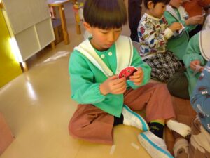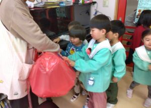 給食のおかずに入っていた大豆も「鬼が嫌いだから食べとこっと!」と心なしかいつもより大豆がお皿から無くなるのが早かった子どもたちでした(笑)