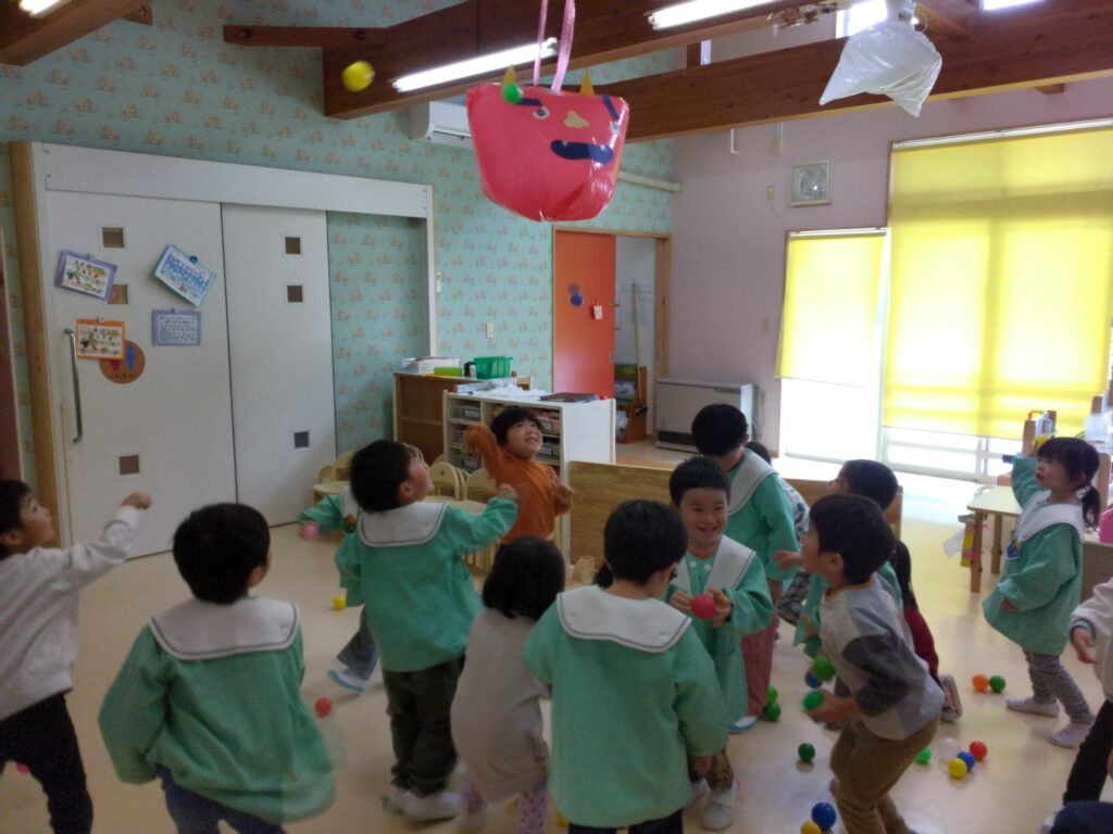 ゲームをしたり、豆(ボール)を投げたり楽しい1日になりました🥰