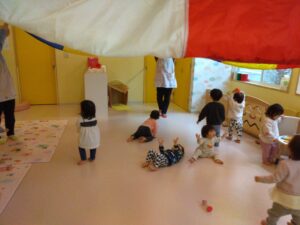 バルーンの下をハイハイで移動したり