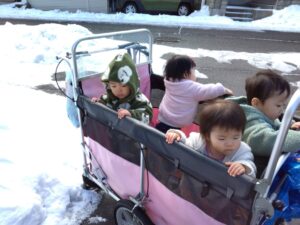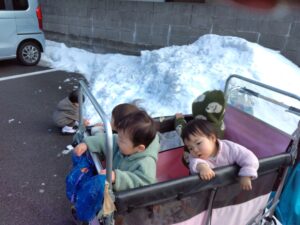 散歩カートからもたくさんの雪を